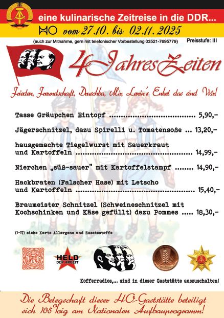 Unsere Speisekarte ist unserem Namen entsprechend nach Jahreszeiten (Frühling, Sommer, Herbst, Winter) untergliedert. Die Speisenauswahl umfasst spezielle Gerichte, welche typisch für diese Jahreszeit sind. Selbstverständlich können Sie bei einem Besuch in unserm Restaurant aus der kompletten Karte wählen.